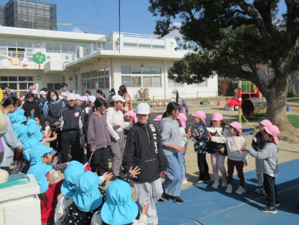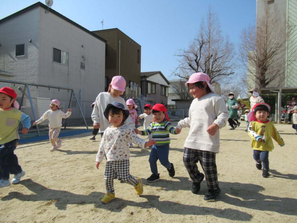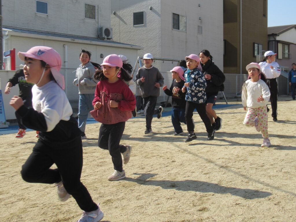 「がんばれ!」と応援したり、乳児クラスも一緒に走りました。