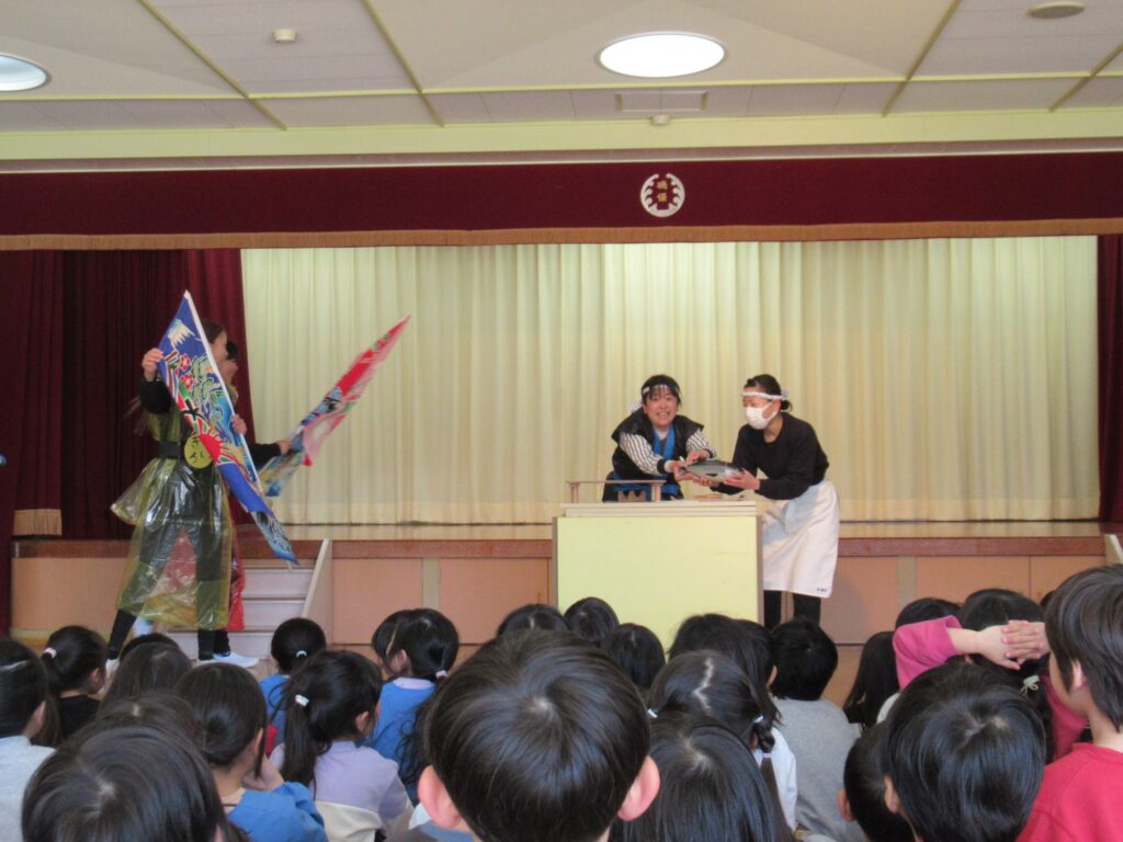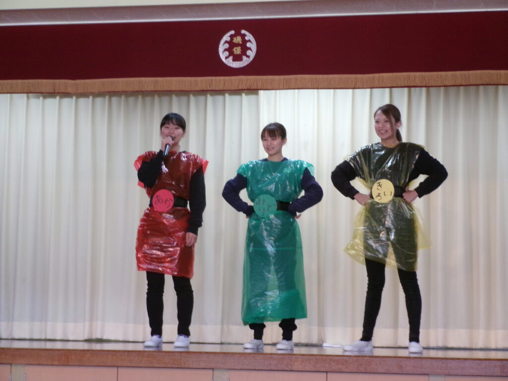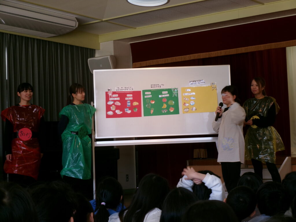 食べ物レンジャー達が、三色品群と6つの基礎食品群について教えてくれました。