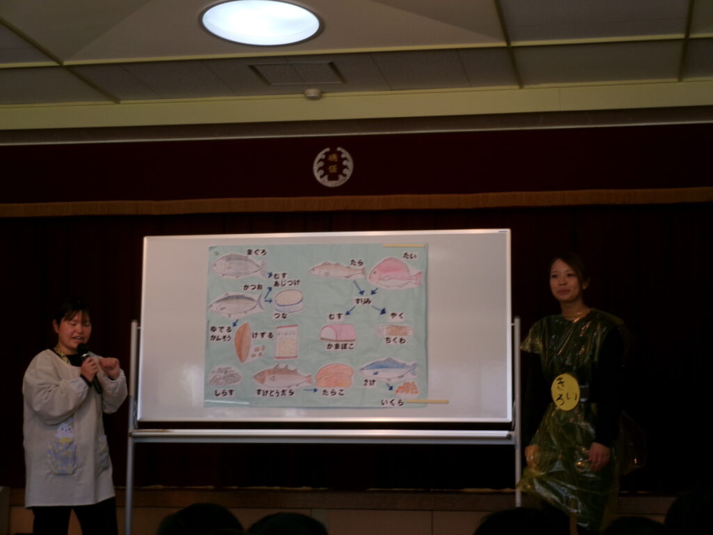 「魚はどんな食べ物に変身するのかな?」「魚の解体ショーが始まります!」