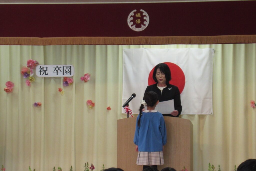 園長先生から卒園証書をいただきました。
