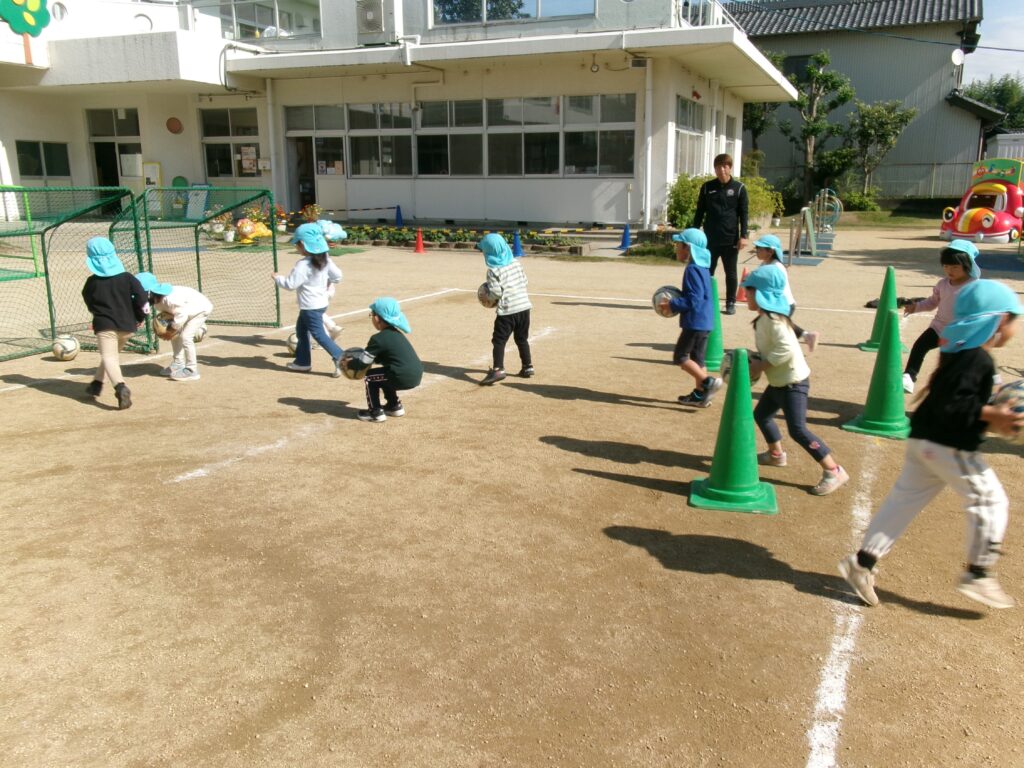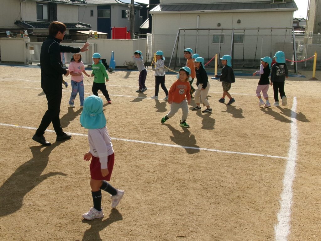 初めての運動教室。前日から張り切っていた子ども達は講師の先生と元気いっぱい体を動かして遊びを楽しみました。