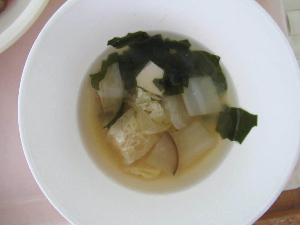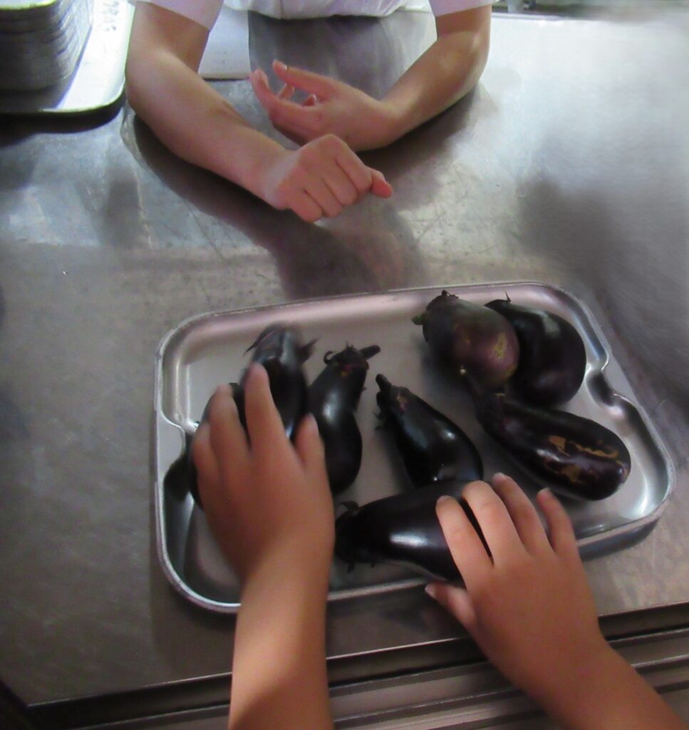 収穫したナスは給食のみそ汁に入れてもらいました。おいしかったね!