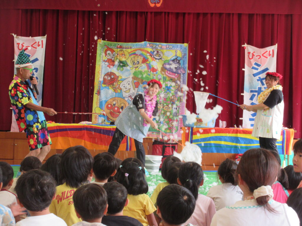 色々なシャボン玉のパフォーマンスを披露してもらいました‼