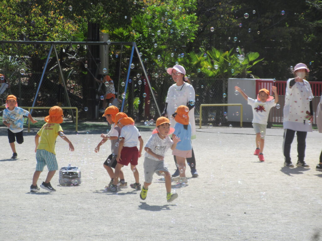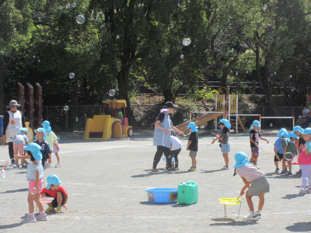 園庭でたくさんシャボン玉遊びをしたよ🎶