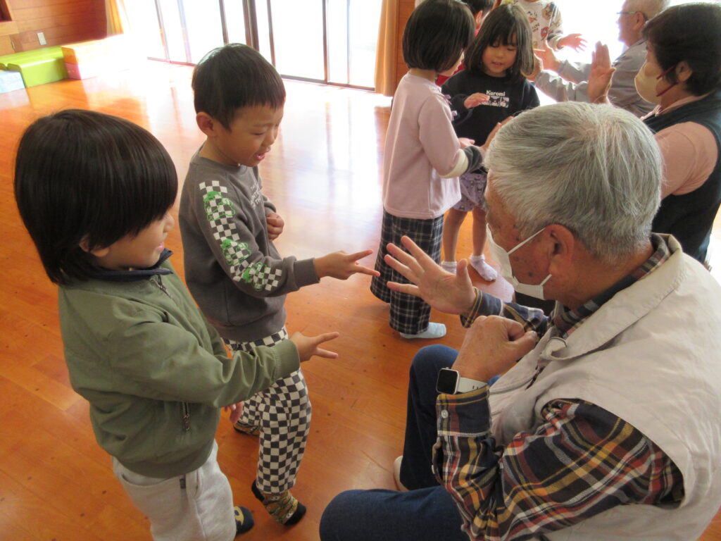 伝承遊びの後は『おてらのおしょうさん』などの手遊びやしりとり、クイズを一緒に楽しみました🥰クイズに正解した時には「やったー!」とみんなでハイタッチ!