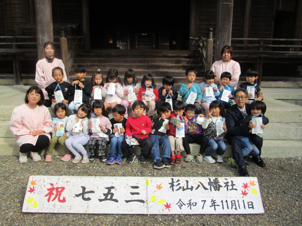 園児全員で杉山八幡社に行き、お参りをしてきました。