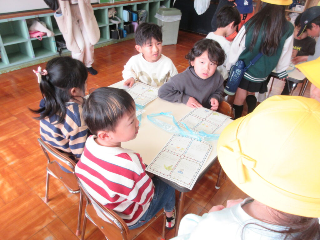 交流会では、一年生の子たちが「保育園の子たちを楽しませてあげよう」と遊びを考えていてくれました。