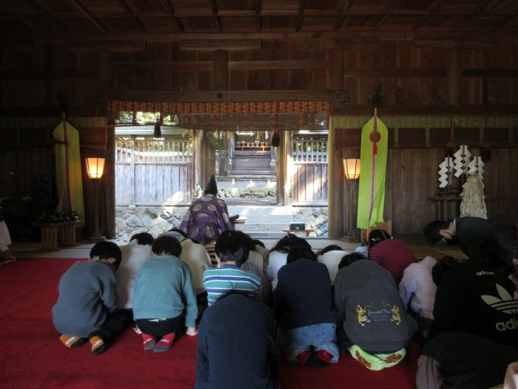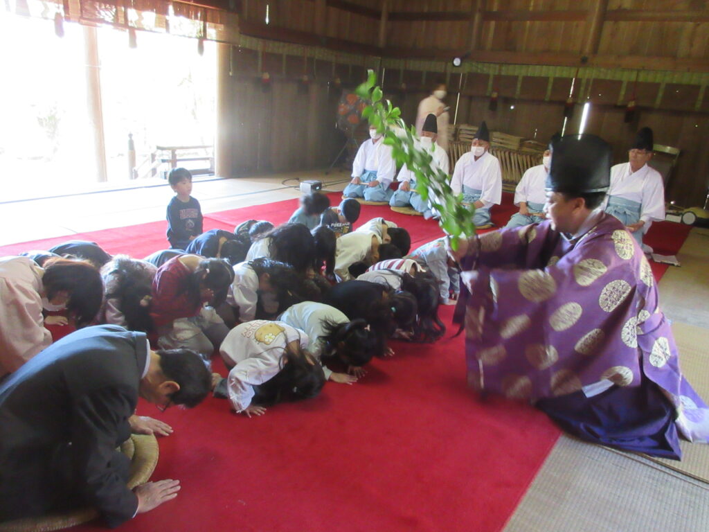 杉山八幡社にて卒園奉告祭がとり行われました。保育園生活を見守ってくださった神様に感謝を伝えると共に小学校でも頑張ることを報告しました。