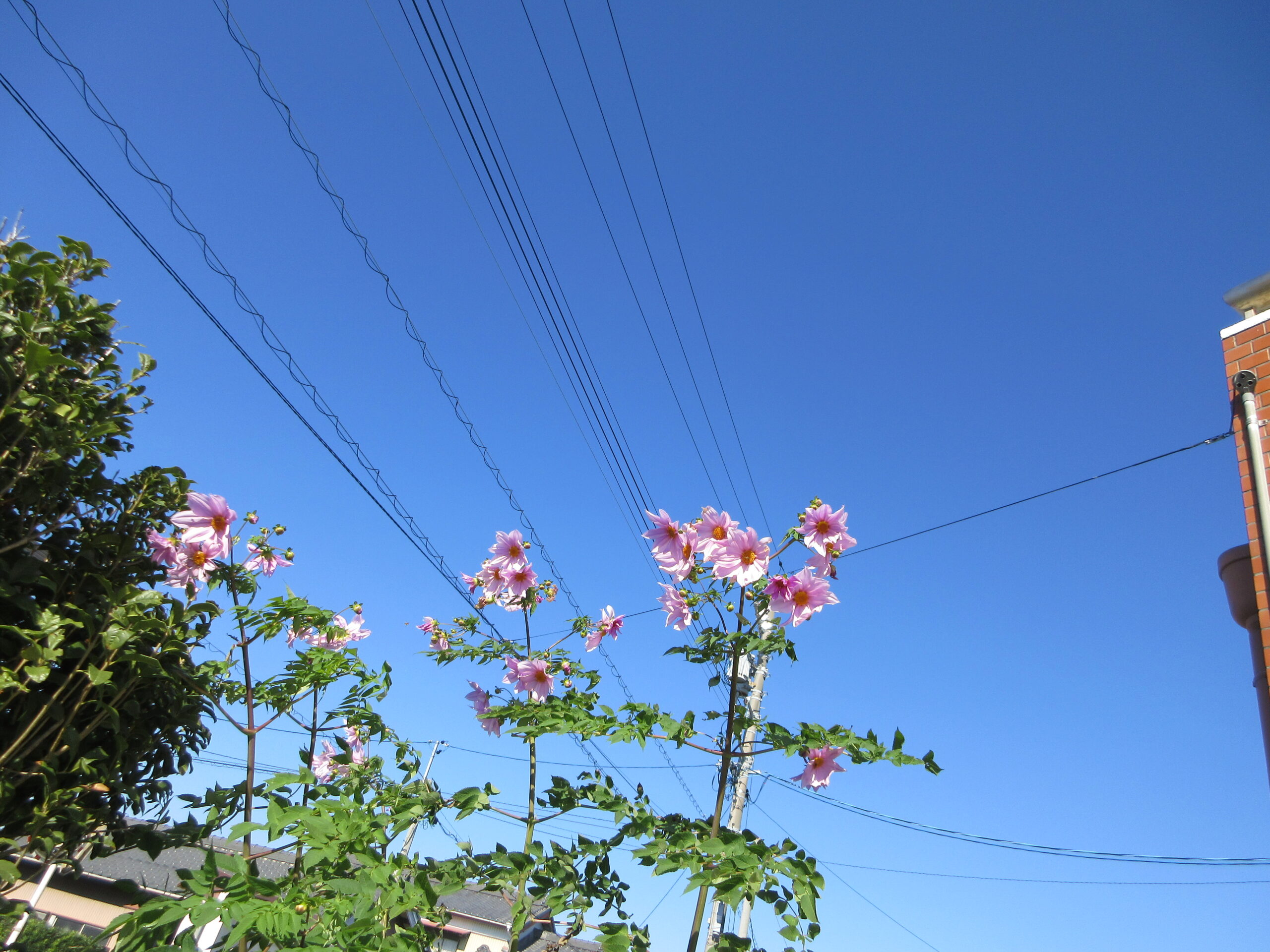 今年も、皇帝ダリアが咲きました。青空に向かって咲く大輪の花に、毎日癒されます。